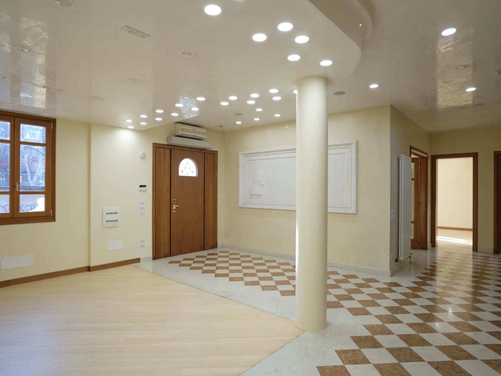 Il Palazzo di Padova presenta al piano terra un vano accessorio di ingresso di ampie dimensioni sul quale affacciano ben sei stanze e locali accessori, oltre a doppi servizi.